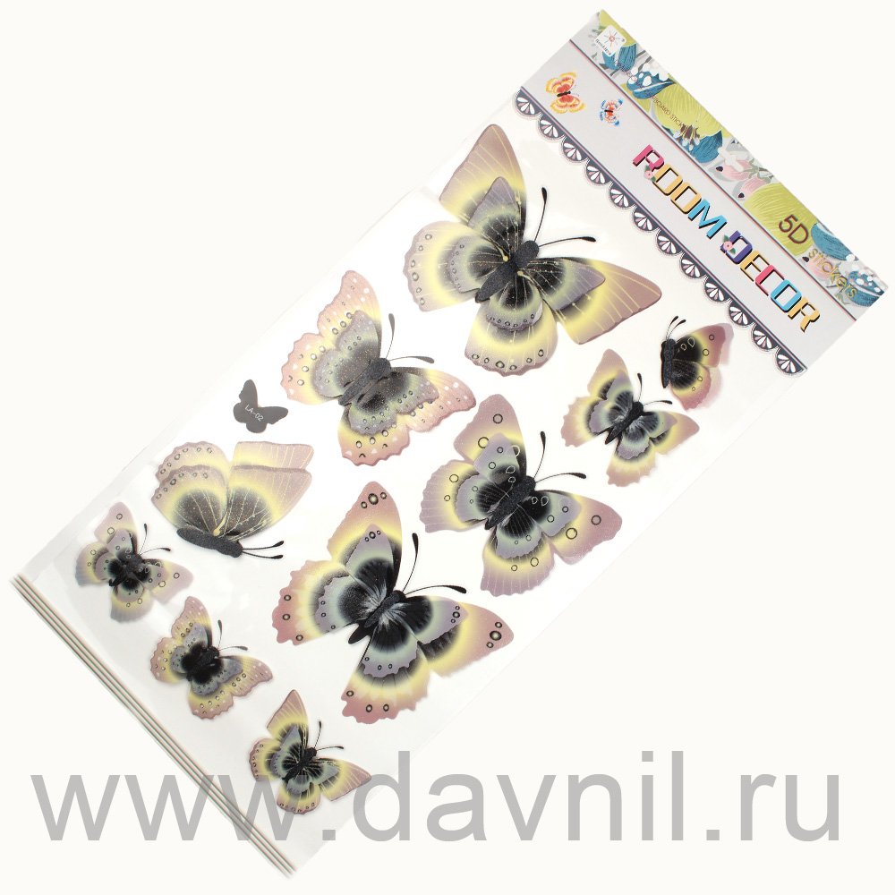 Бабочки декоративные 5D на липучке 10 шт. цветные 30/2