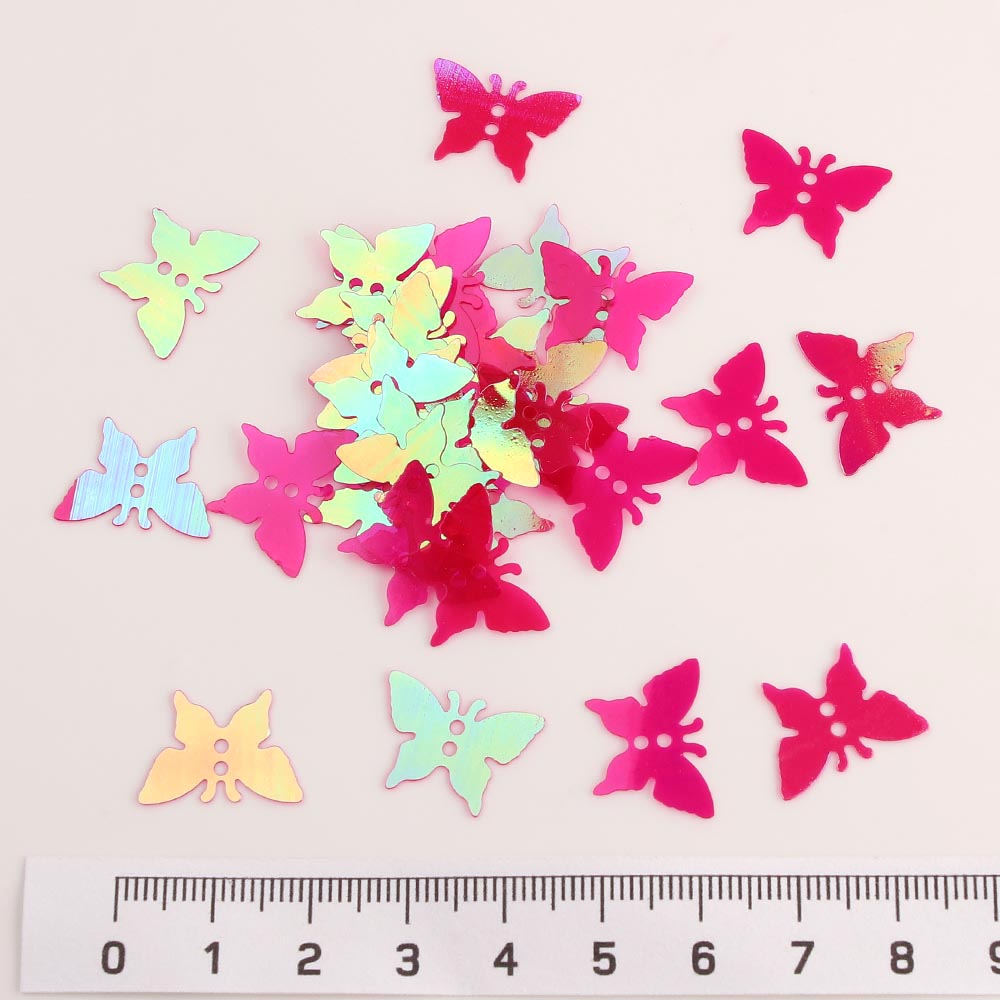 Пайетки пришивные бабочки 17 мм 50 гр голограмма малиновые