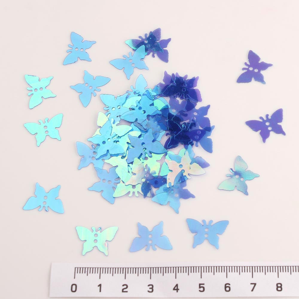 Пайетки пришивные бабочки 17 мм 50 гр голограмма синие