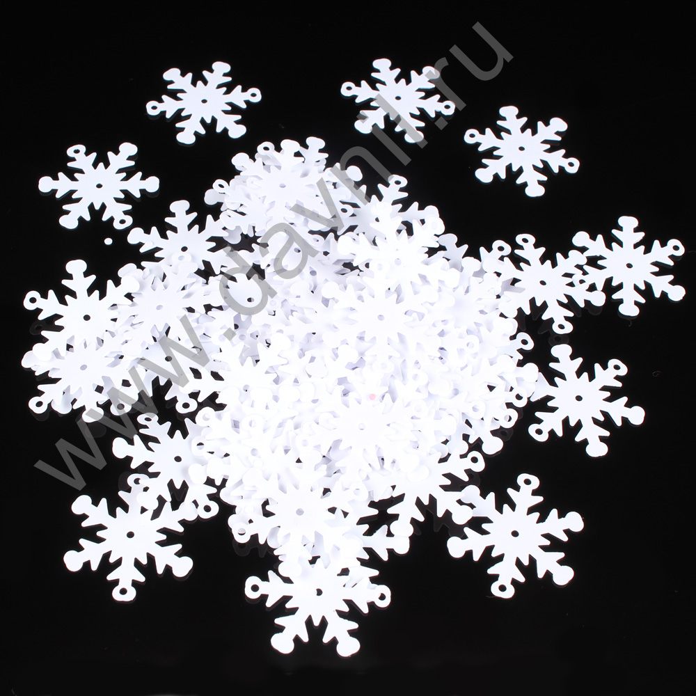 Фигурные пайетки в форме снежинок, белые. Пришивные пайетки могут использоваться во многих видах рукоделия: шитье, вышивание, изготовление композиций, декорирование, упаковка и многое другое.