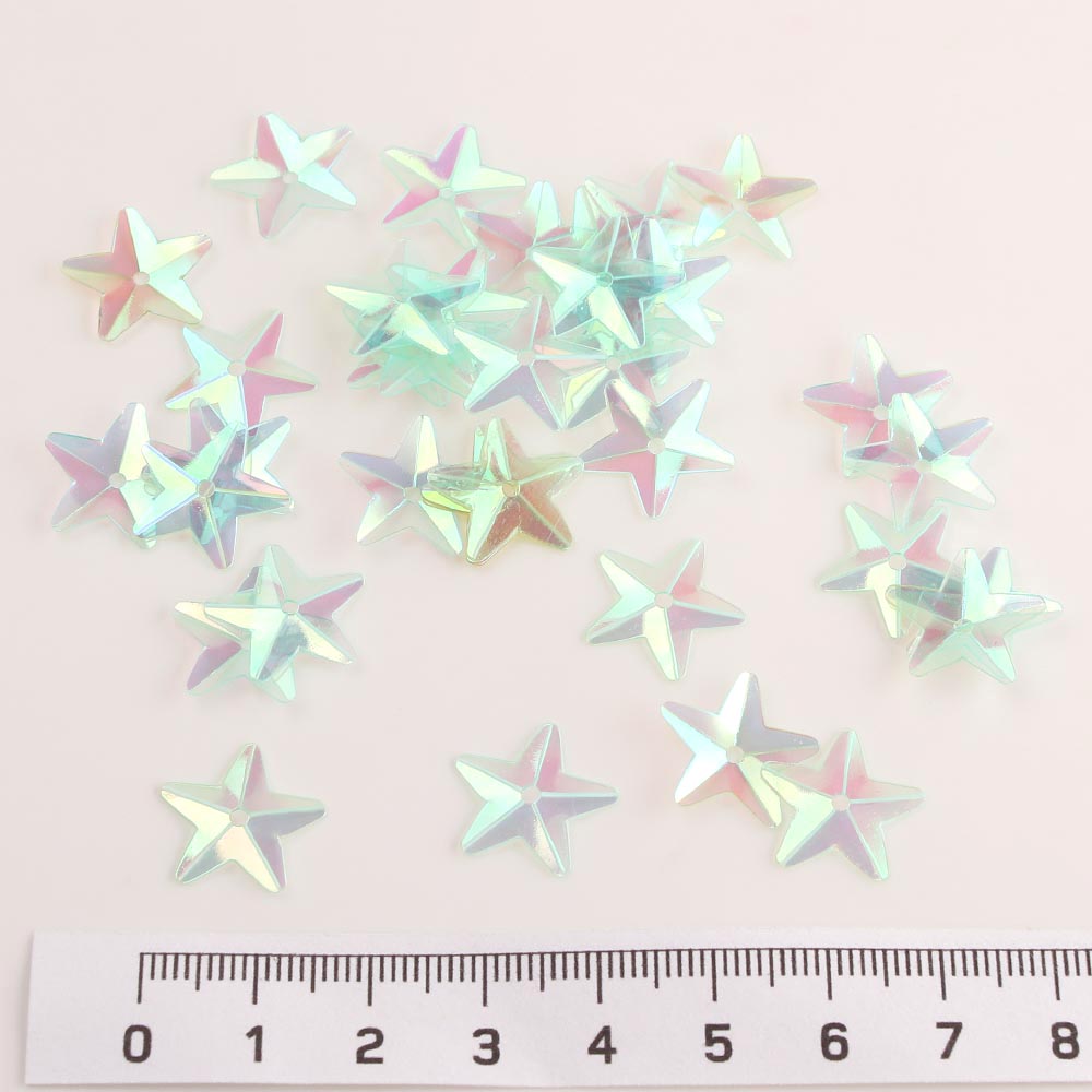 Пайетки пришивные звёздочка 15 мм 50 гр голограмма мятные
