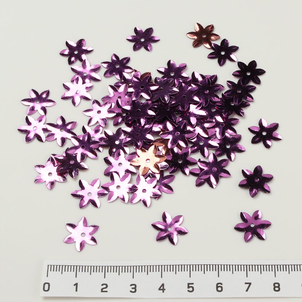 Пайетки пришивные цветок 15 мм 50 гр голограмма лиловые
