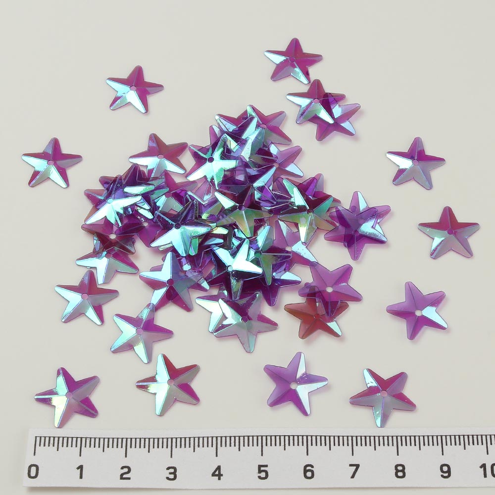 Пайетки пришивные звёздочка 15 мм 50 гр голограмма фиолетовые