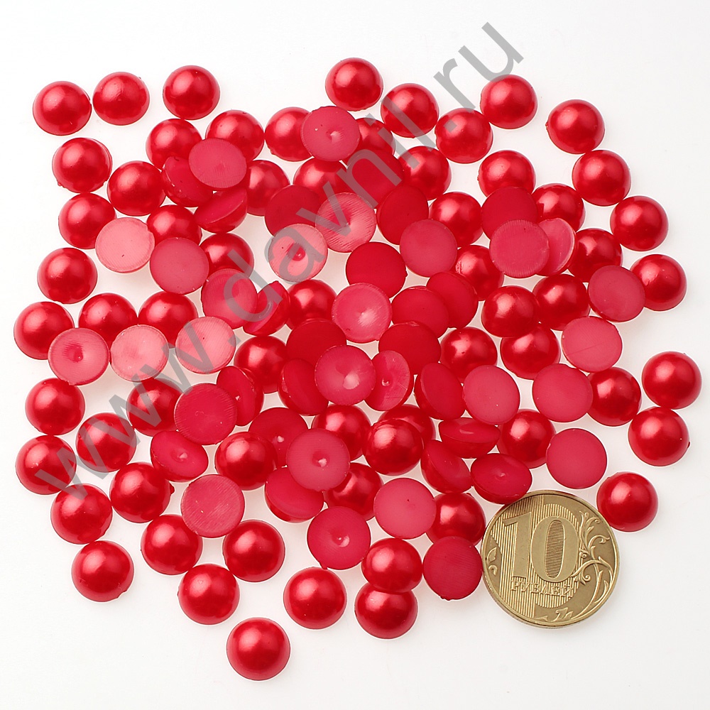 Полубусины под жемчуг клеевые 10 мм 50 гр красные с перломутром