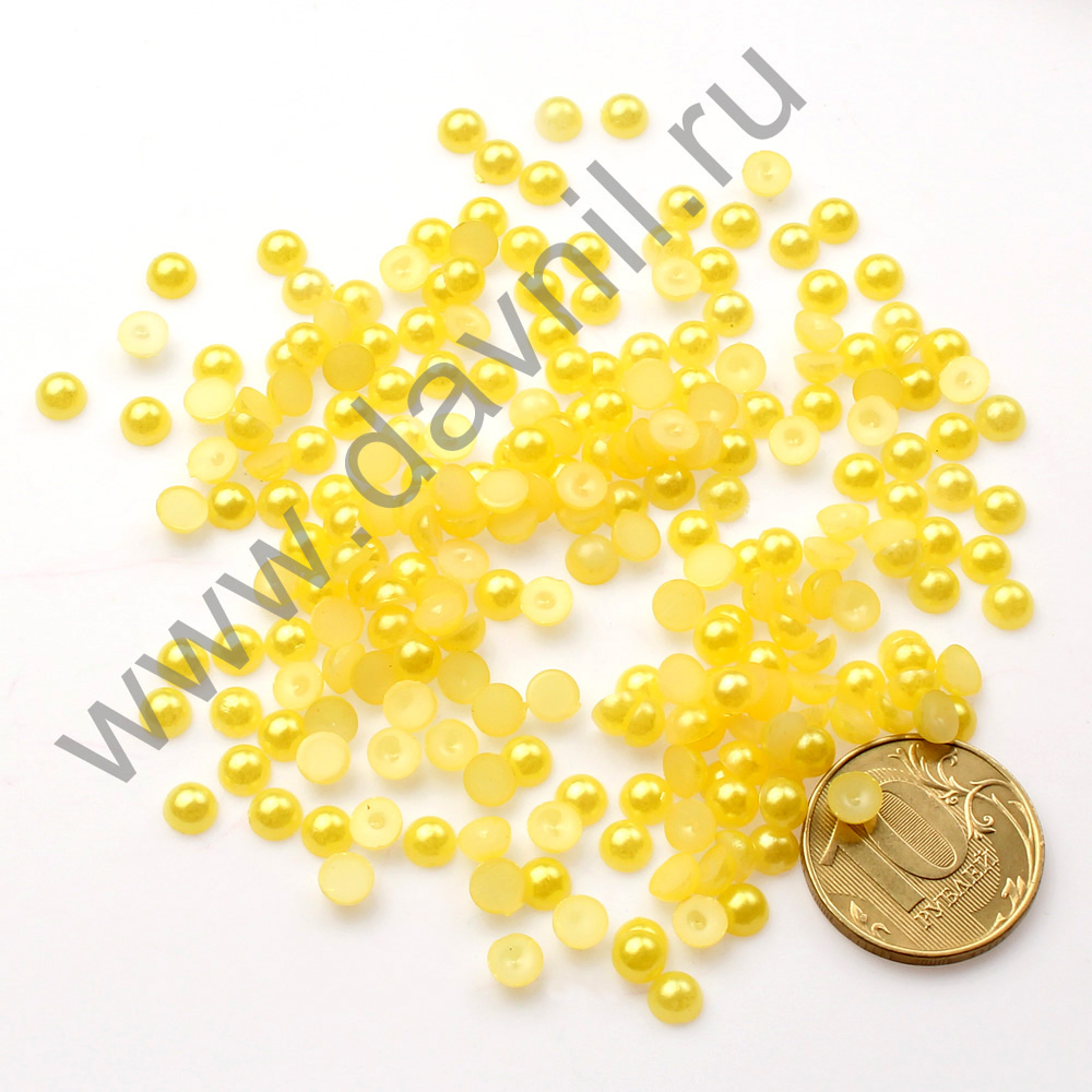 Полубусины под жемчуг клеевые 5 мм 50 г жёлтые с перламутром