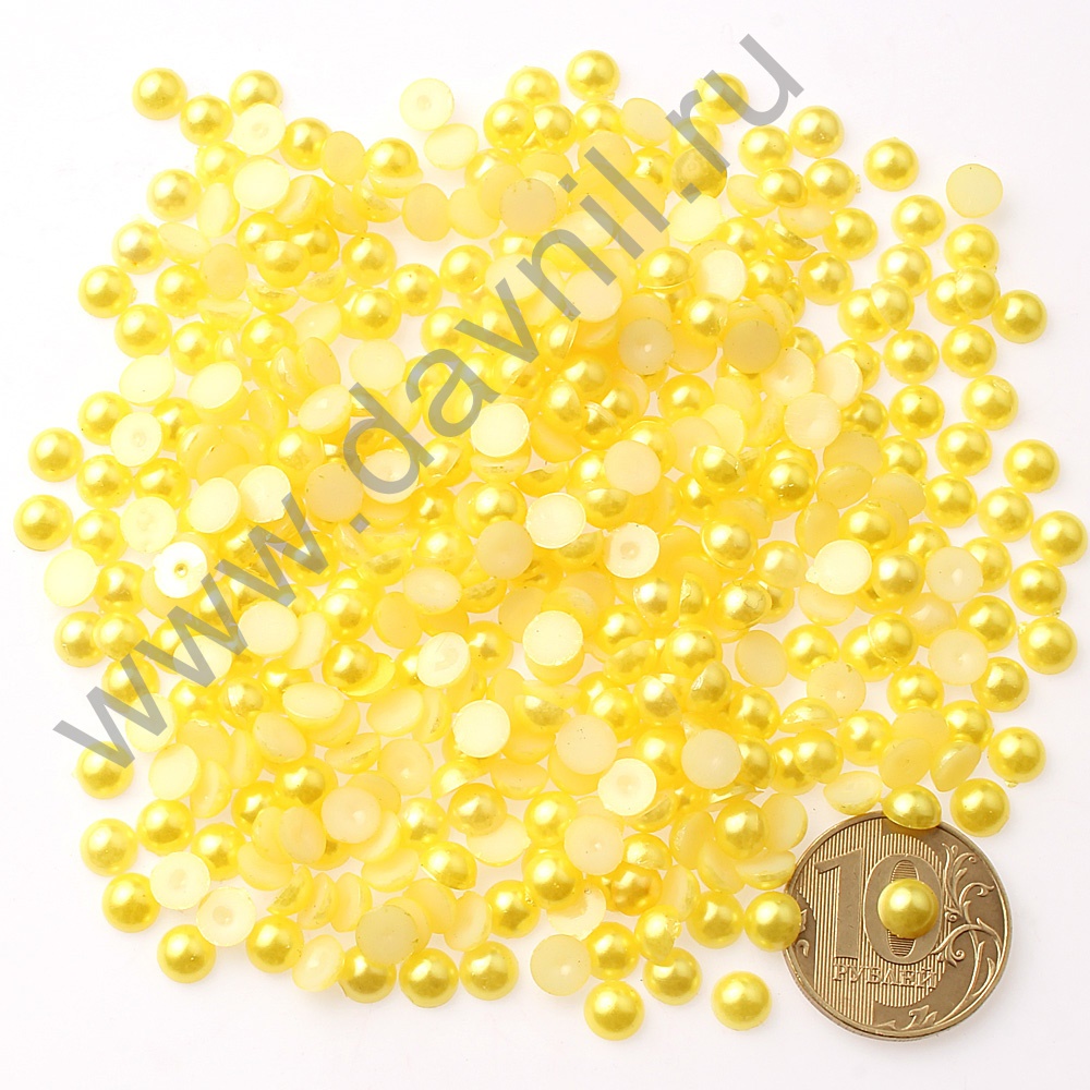 Полубусины под жемчуг клеевые 6 мм 50 гр жёлтые