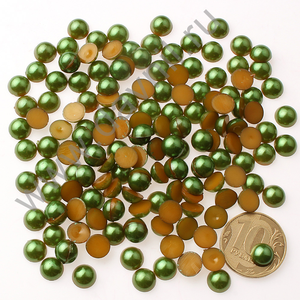 Полубусины под жемчуг клеевые 8 мм 400 г, хаки с перламутром