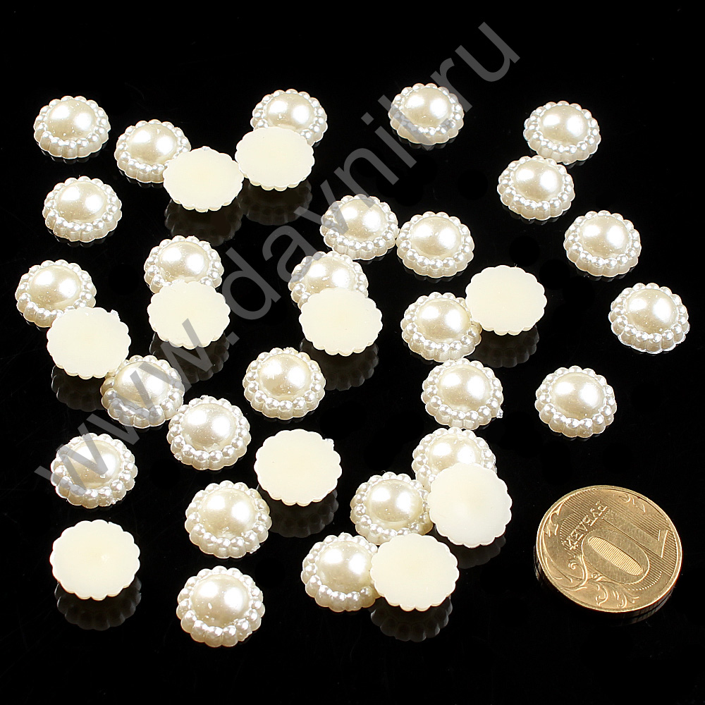 Полубусины под жемчуг ромашка 12 мм 400 гр бежевые с перламутром