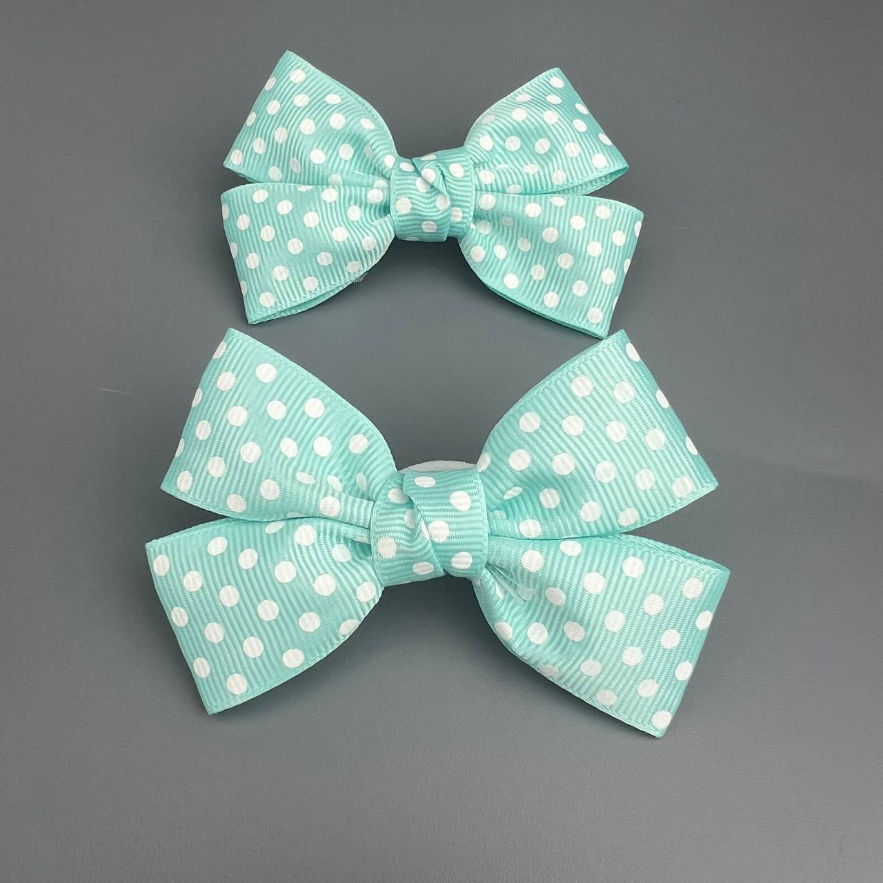 Бант для волос "маленькая принцесса" на резинке 2 шт мятный в горошек