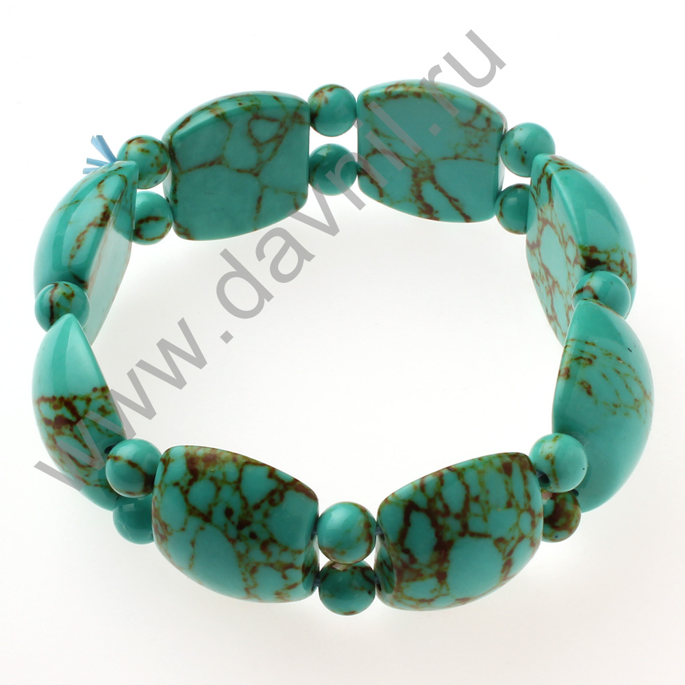 Браслет квадраты с шариками имитация камня зеленая бирюза