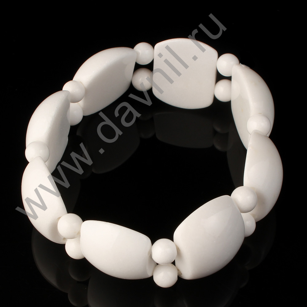 Браслет 6 мм с квадратами имитация камня агат белый