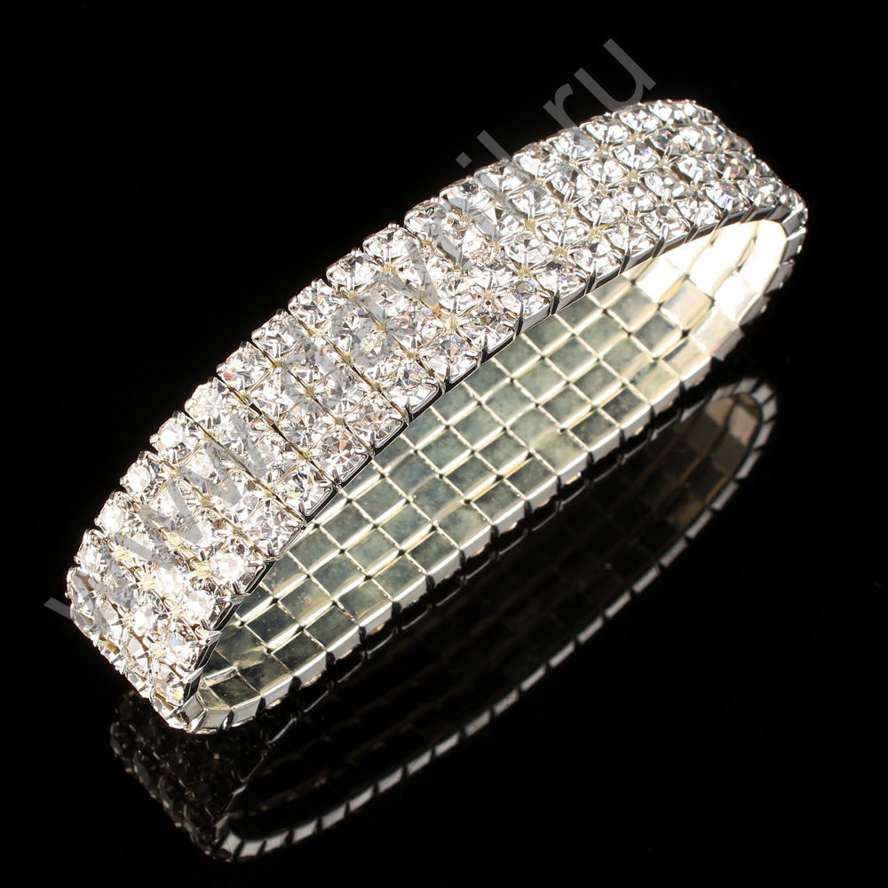 Браслет 4 ряда металлический со стразами 4 ряда серебро