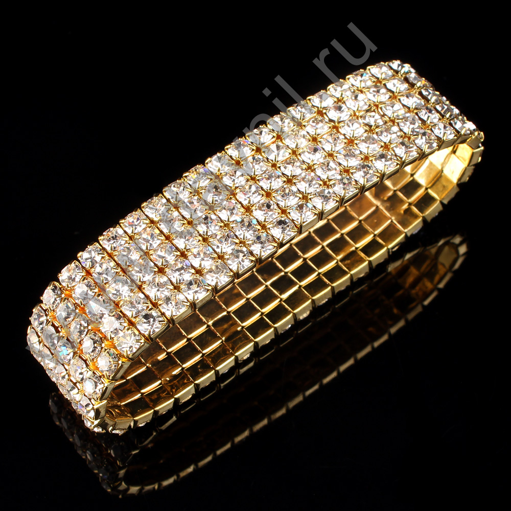 Браслет 5 рядов металлический со стразами золото