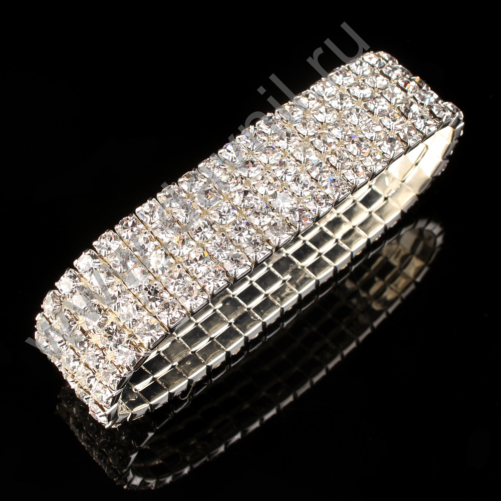 Браслет 5 рядов металлический со стразами серебро