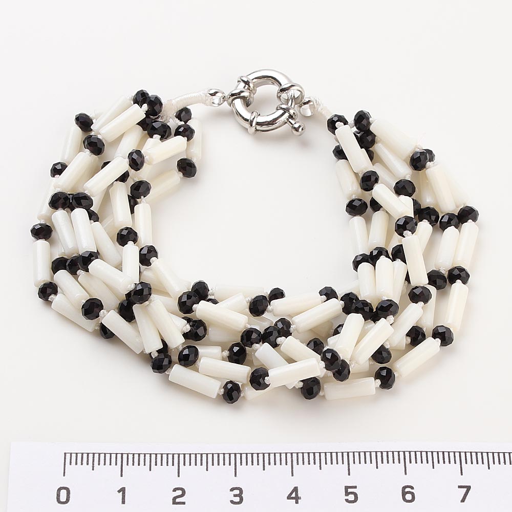 Браслет натуральный коралл белый переплетённый с хрусталиками 8 рядов