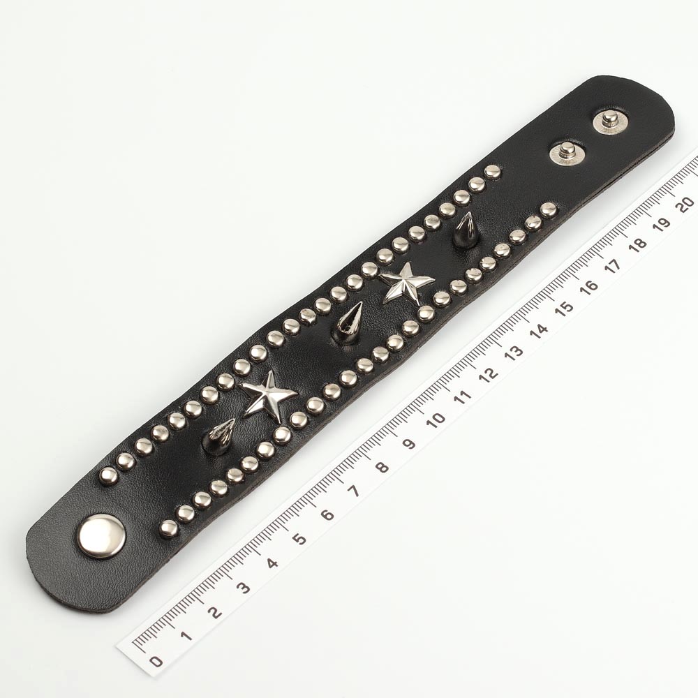 Браслет мужской с металлическими шипами и заклепками чёрный
