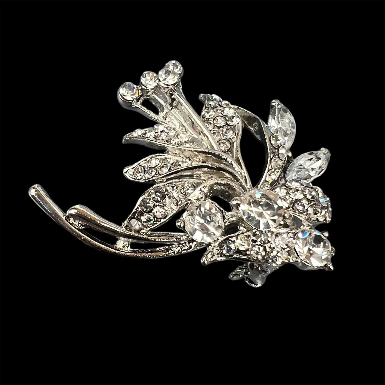 Брошь со стразами цветок серебро