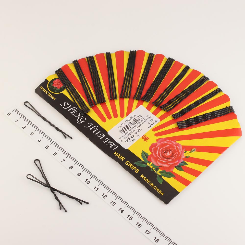 Невидимка для волос ребристая 48 шт 5,5 см чёрная на жёлтом листе