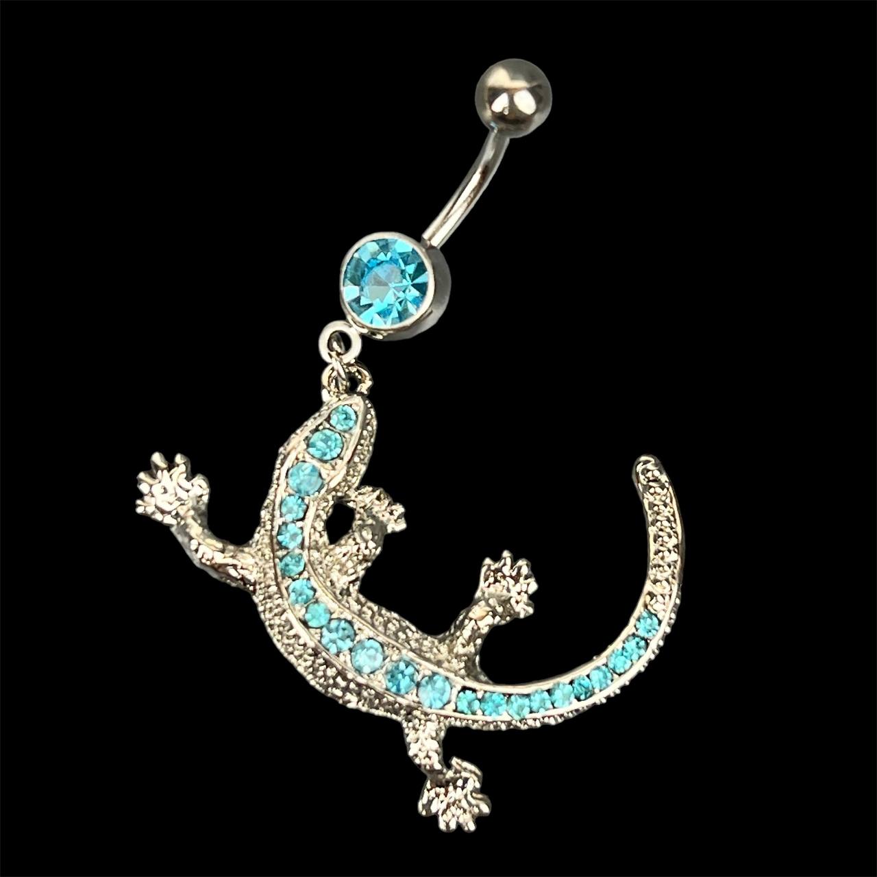 Пирсинг ящерица с голубыми стразами 1 шт