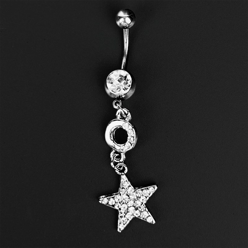 Пирсинг висюлька звёздочка с белыми стразами 1 шт