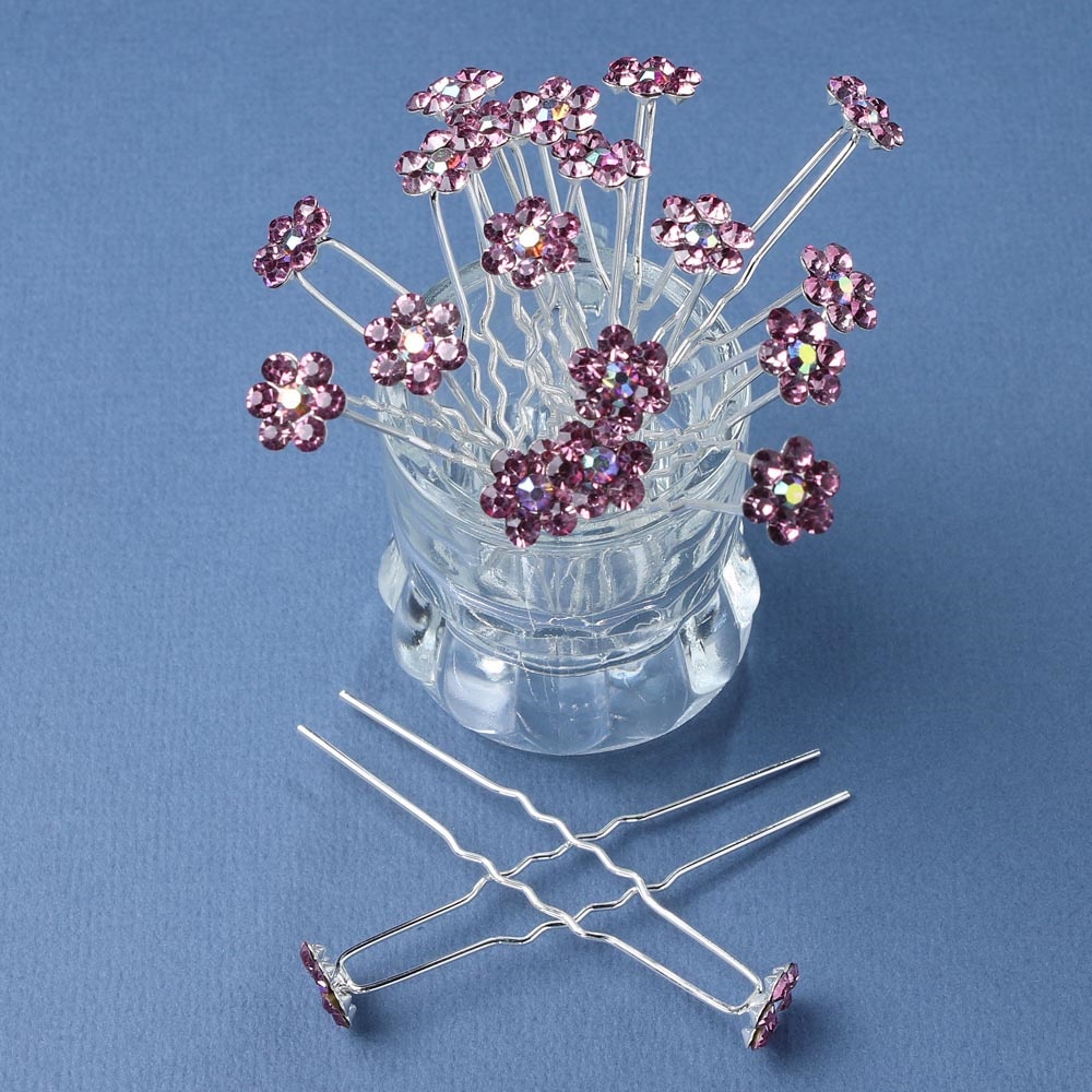 Шпильки для волос цветок из страз 12 мм 20 шт сиреневые 15/6