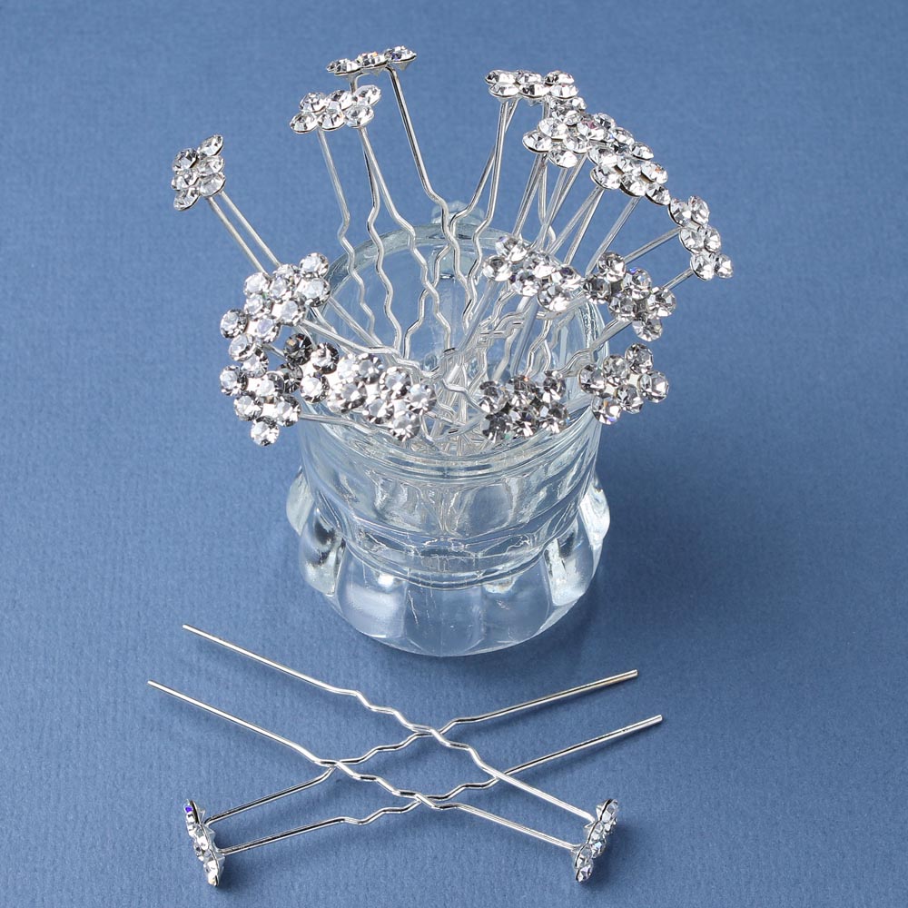 Шпильки для волос со стразами 20 шт белые 20/1