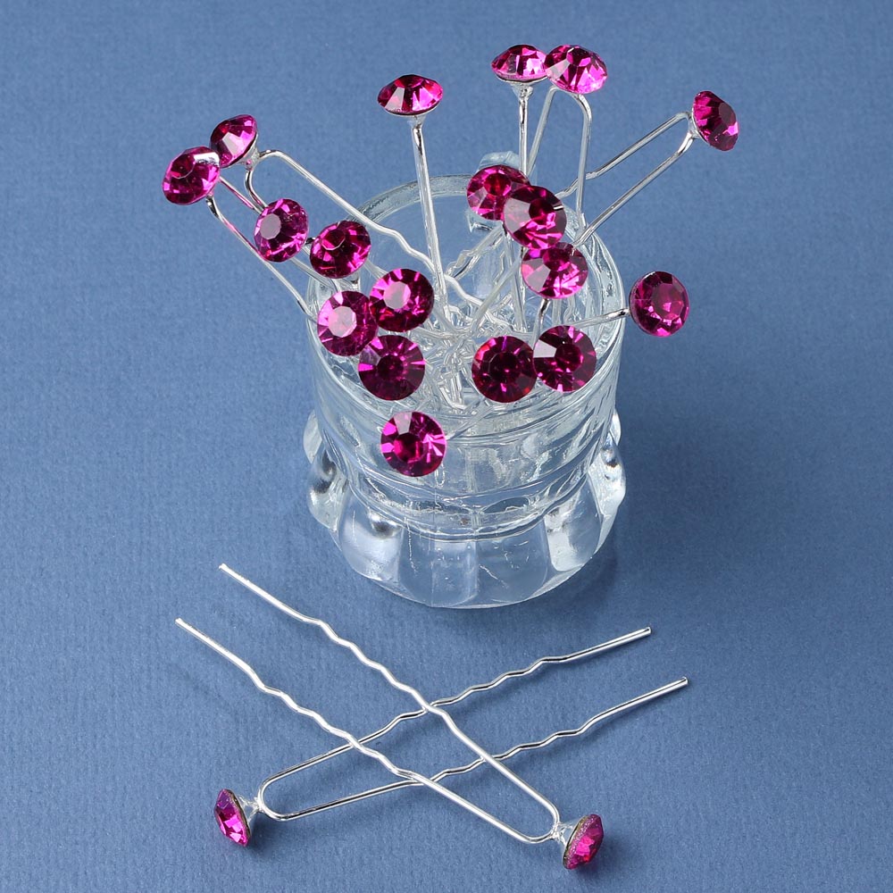 Шпильки для волос с крупной стразинкой 8 мм 20 шт фуксия 24/2