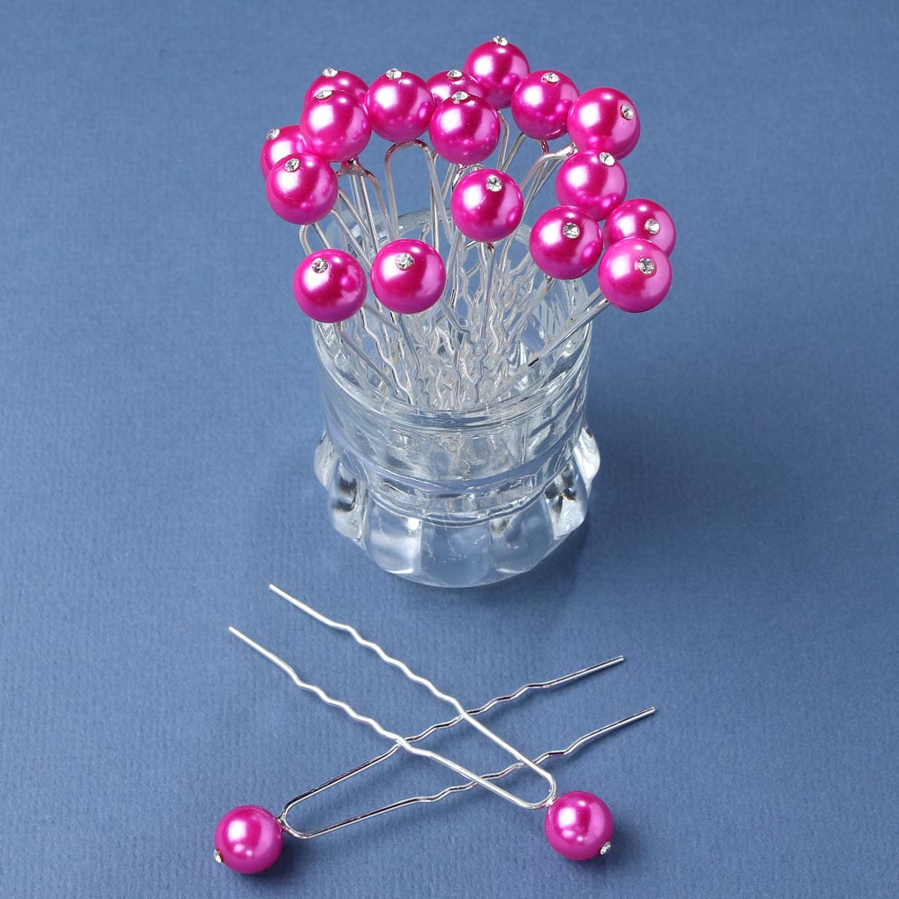 Шпильки для волос жемчуг со стразинкой 10 мм 20 шт фуксия 11/3