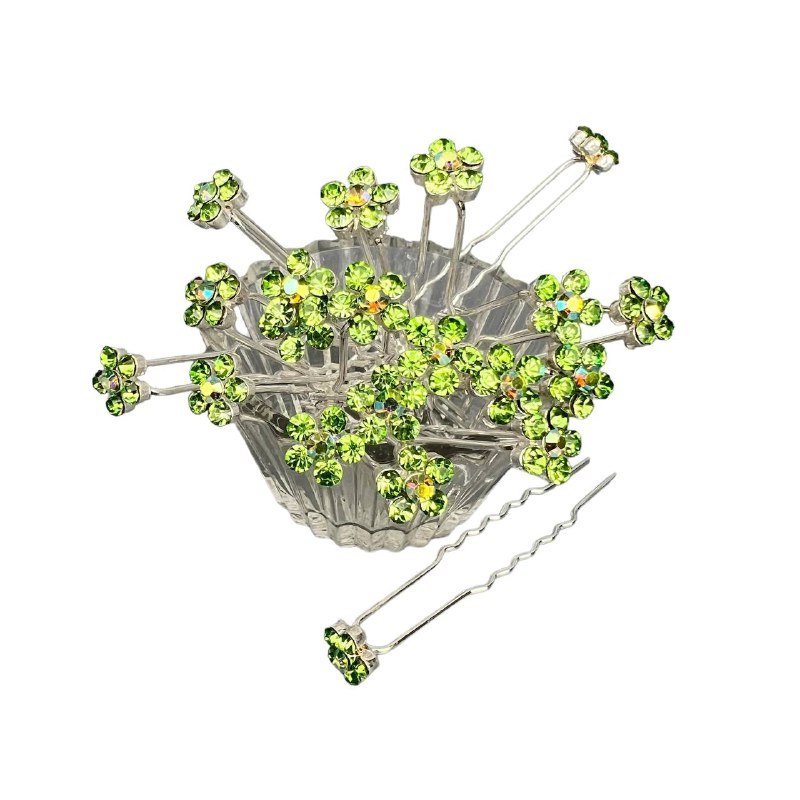 Шпильки для волос цветок из страз 10 мм 20 шт зеленые 12/3