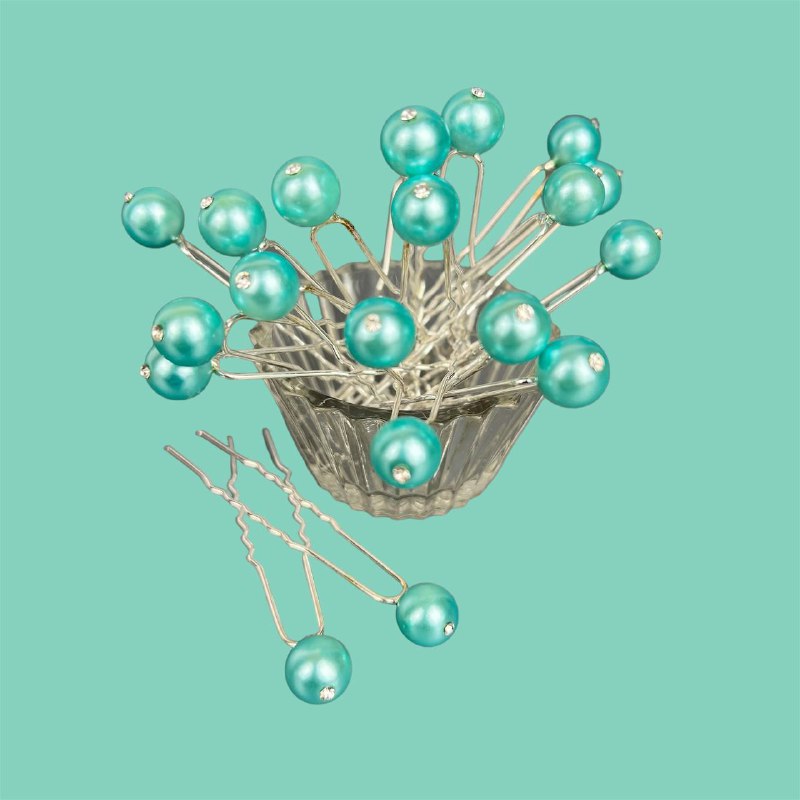 Шпильки для волос жемчуг со стразинкой 10 мм 20 шт бирюзовые 11/9