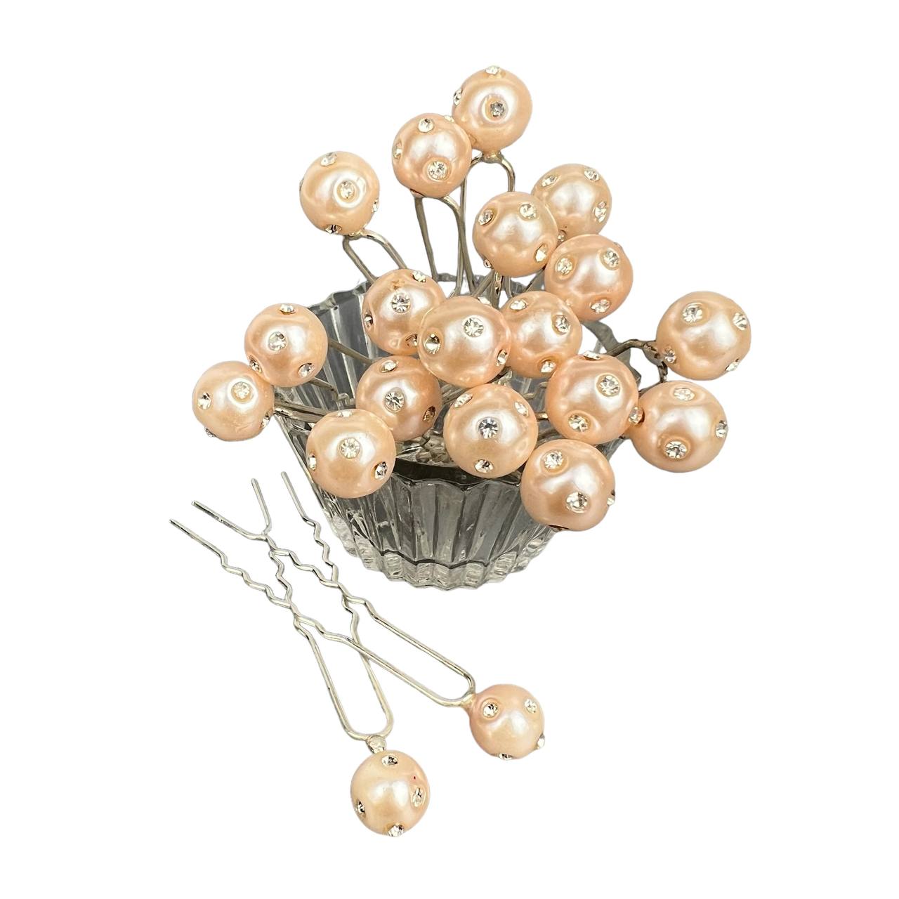 Шпильки для волос жемчуг со стразами 10 мм 20 шт персиковые 18/2