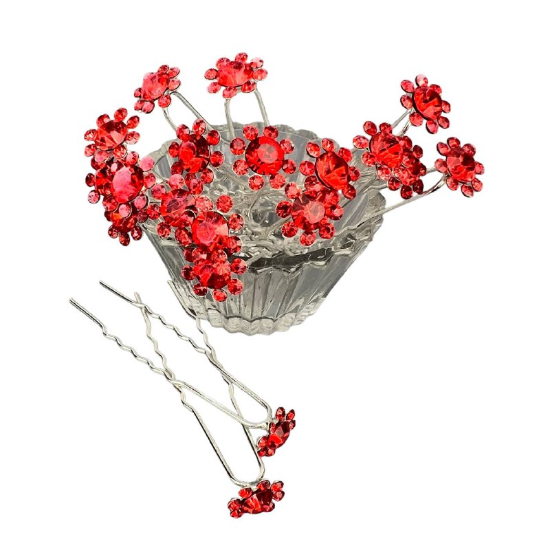 Шпильки для волос ромашка из страз 12 мм 20 шт красные 21/5