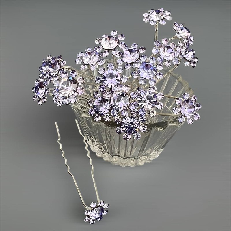 Шпильки для волос ромашка из страз 12 мм 20 шт голубые 21/9