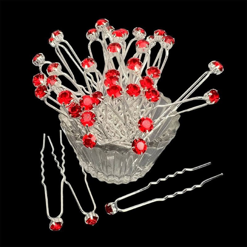 Шпильки для волос со стразами 6 мм 40 шт красные 16/7