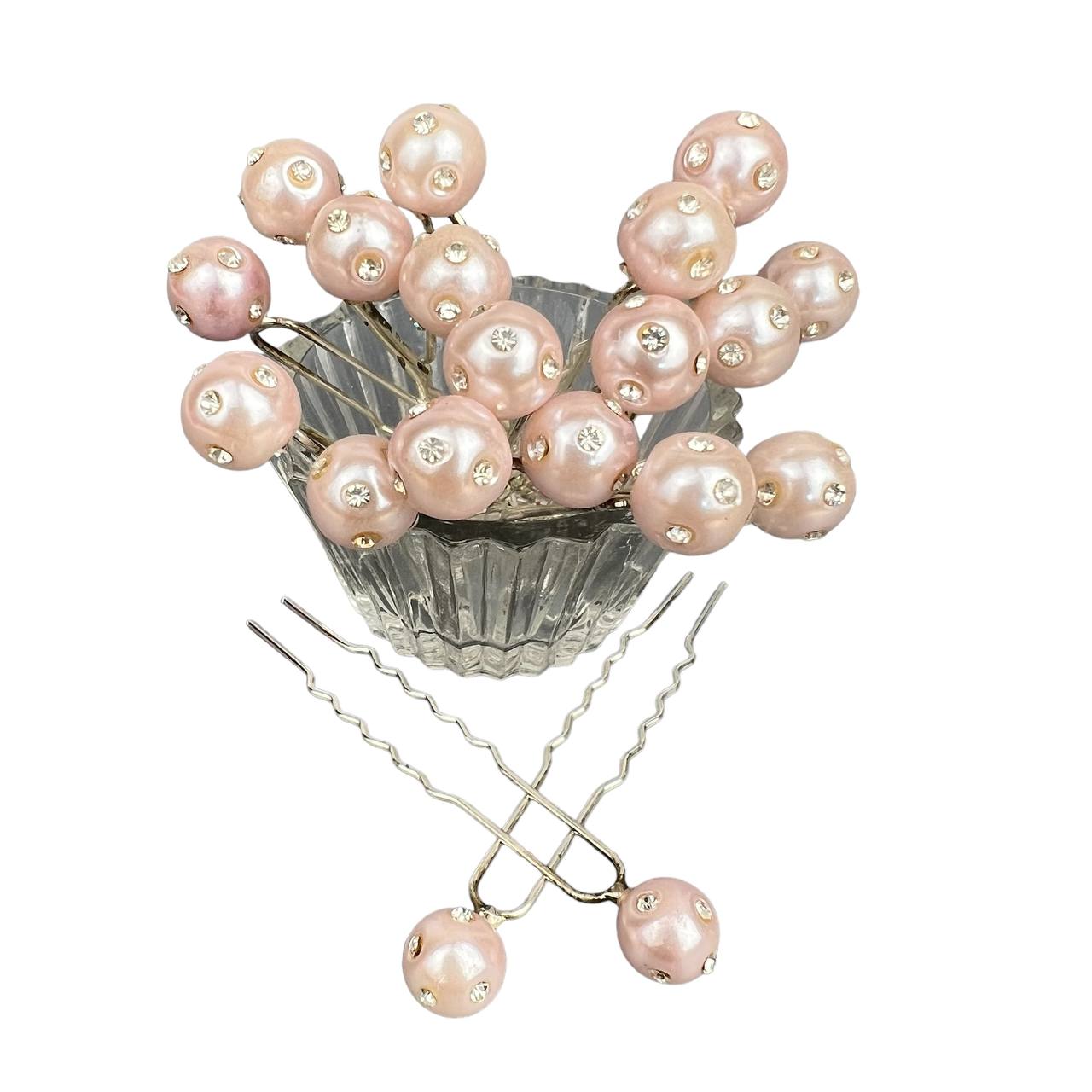 Шпильки для волос жемчуг со стразами 10 мм 20 шт розовые 18/3