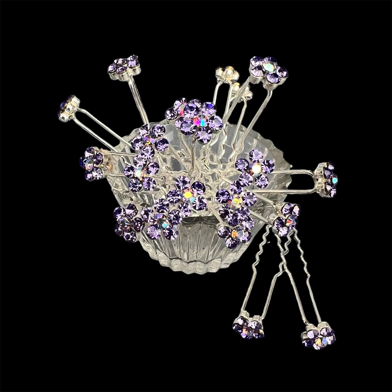 Шпильки для волос цветок из страз 10 мм 20 шт лаванда 12/10