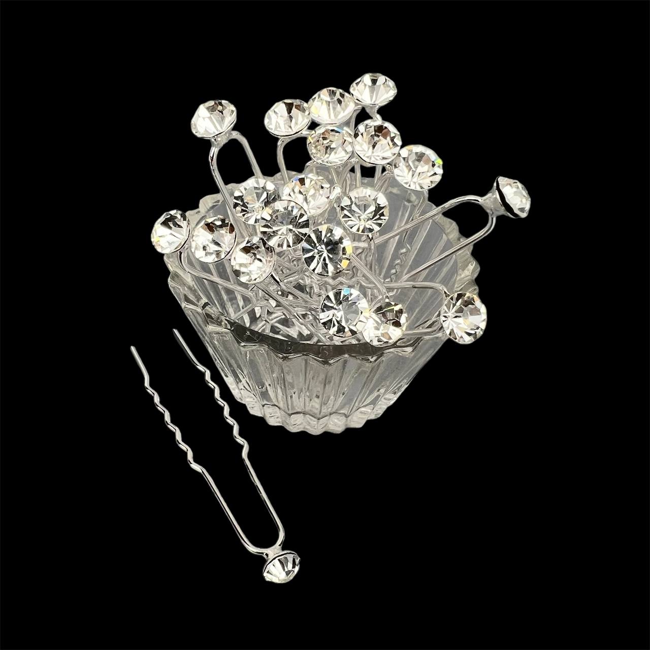 Шпильки для волос со стразинкой 6 мм 20 шт белые 23/1