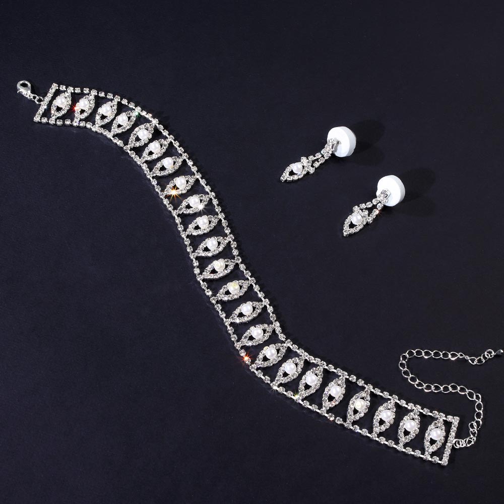 Набор Колье и серьги со стразами и жемчугом №5