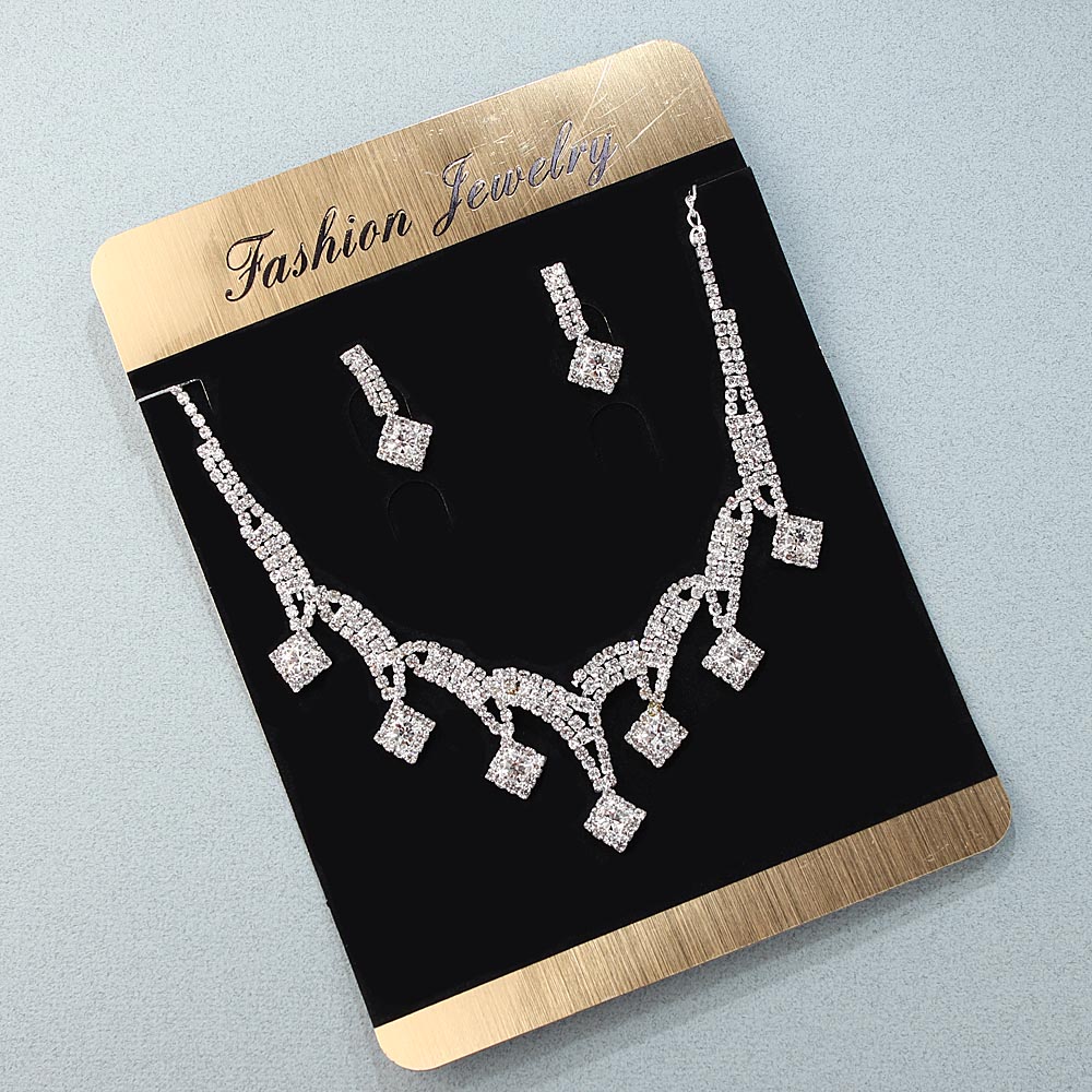 Колье и серьги со стразами серебро 3212/15