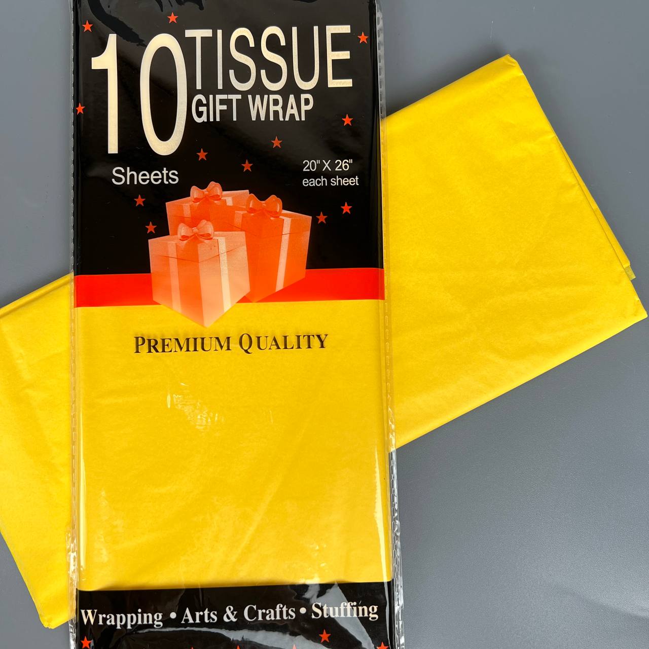 Бумага тишью 50*66 см 10 шт. жёлтая 108