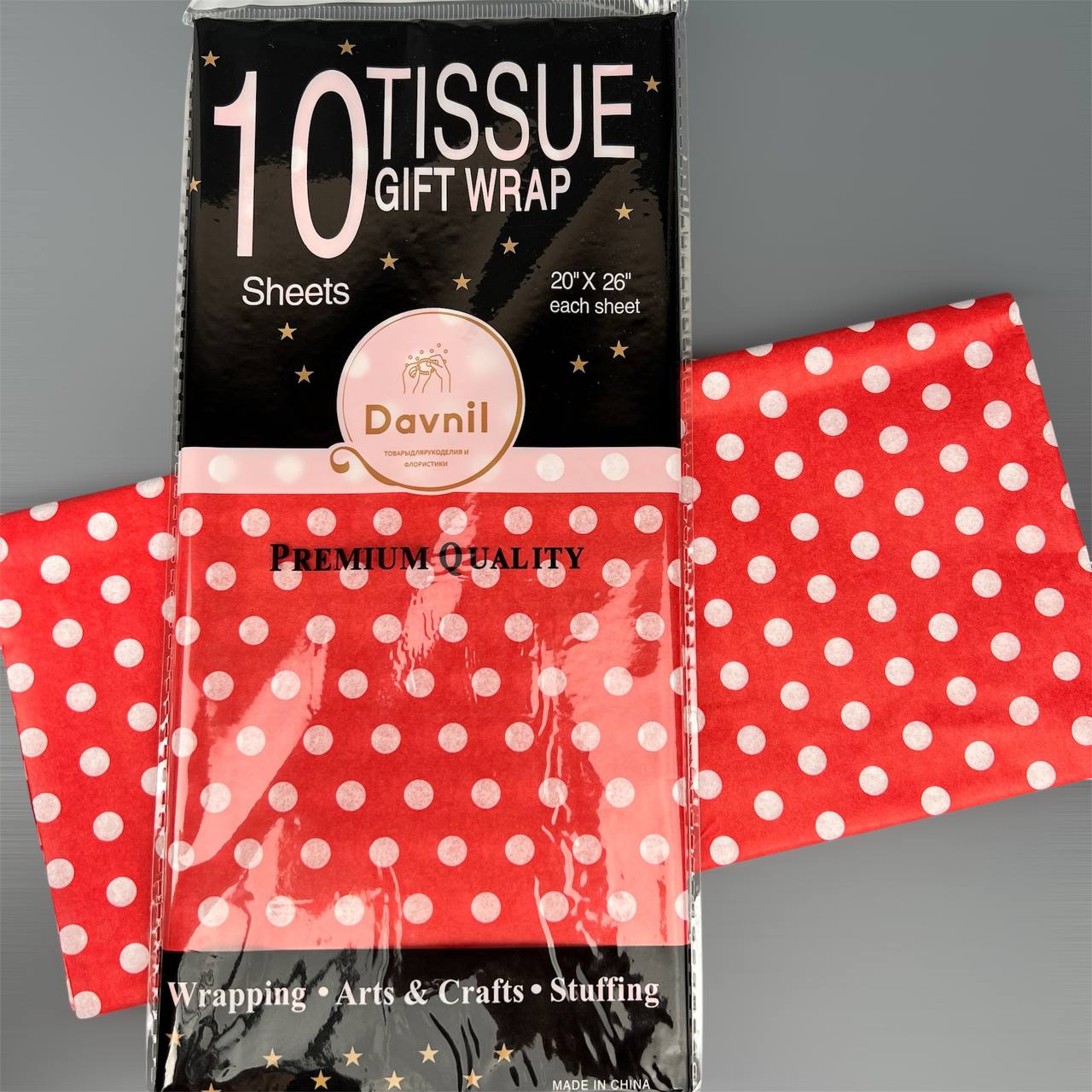 Бумага тишью 50*66 см 10 шт в мелкий горох красная 2
