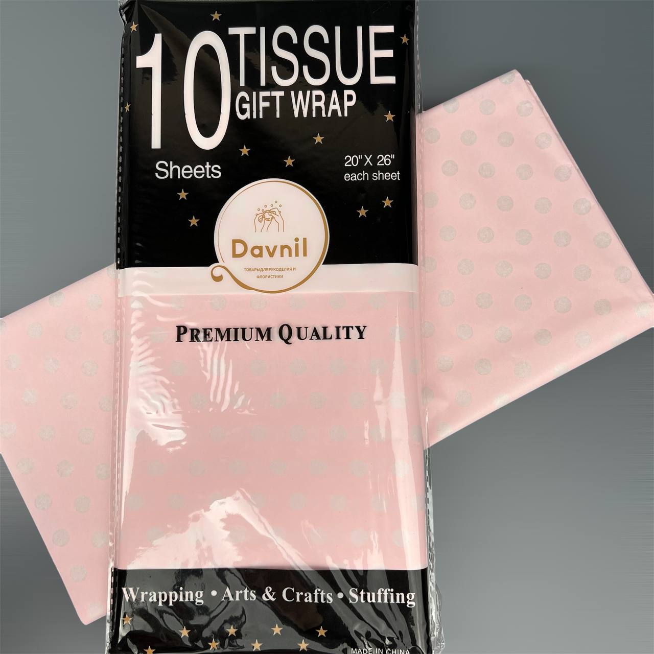 Бумага тишью 50*66 см 10 шт в мелкий горох розовая 3