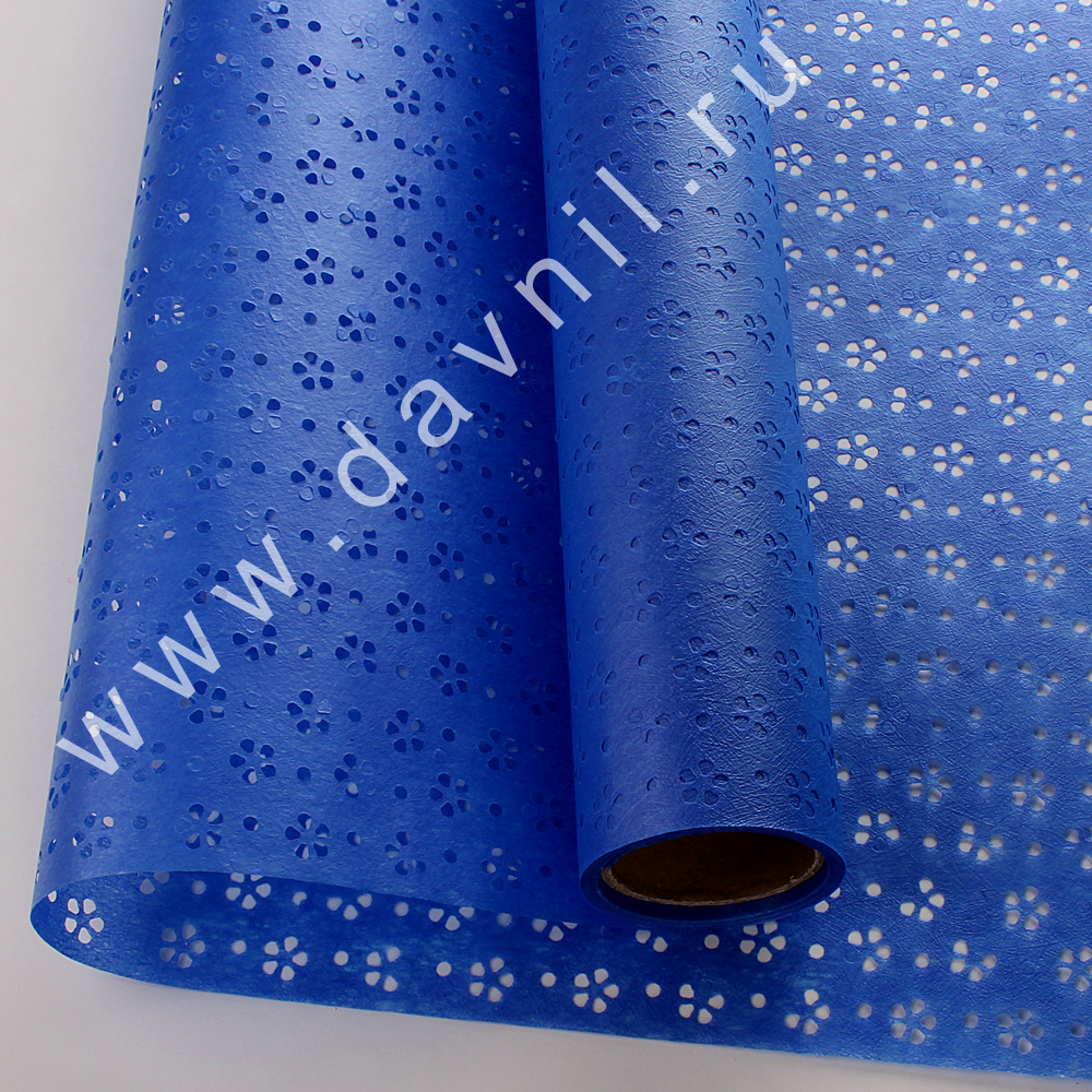 Бумага упаковочная дизайнерская перфорированная "Цветок" 60 см*5 ярдов синяя