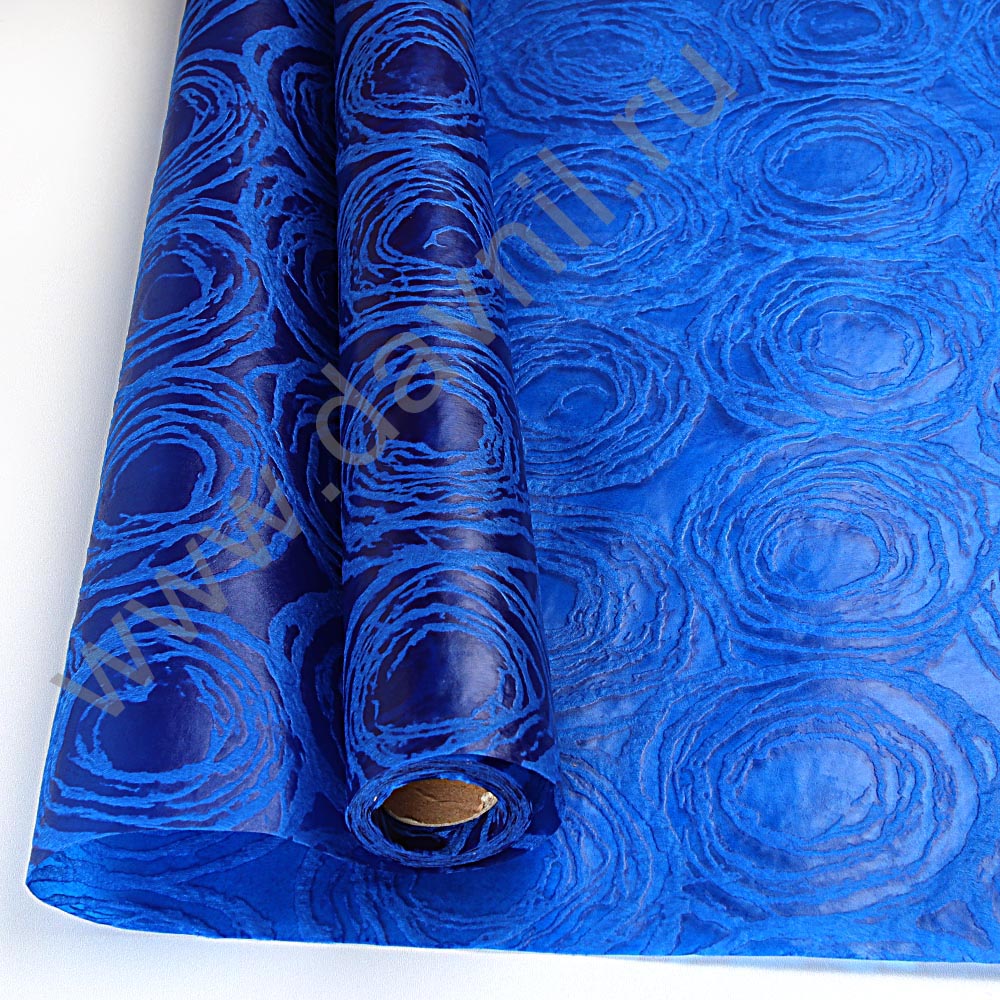 Бумага упаковочная дизайнерская "Роза" 60 см*5 метров синяя 102