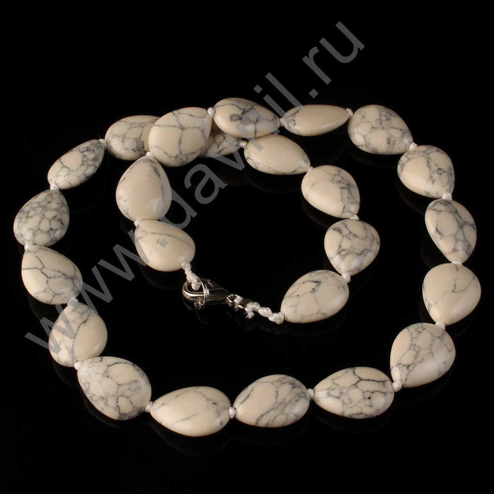 Бусы 18 мм капля плоская имитация камня кахолонг 45 см бежевые
