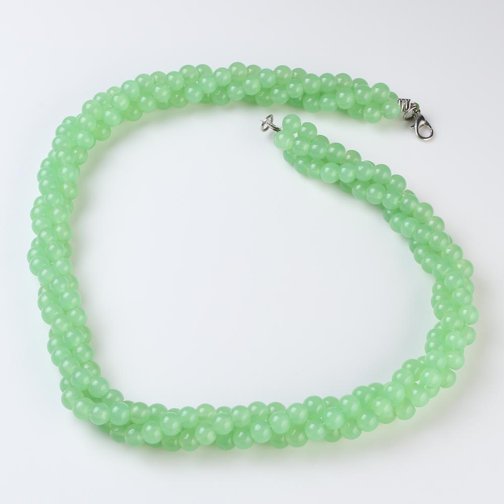 Бусы 6 мм тройное плетение имитации камня нефрит 45 см зелёные