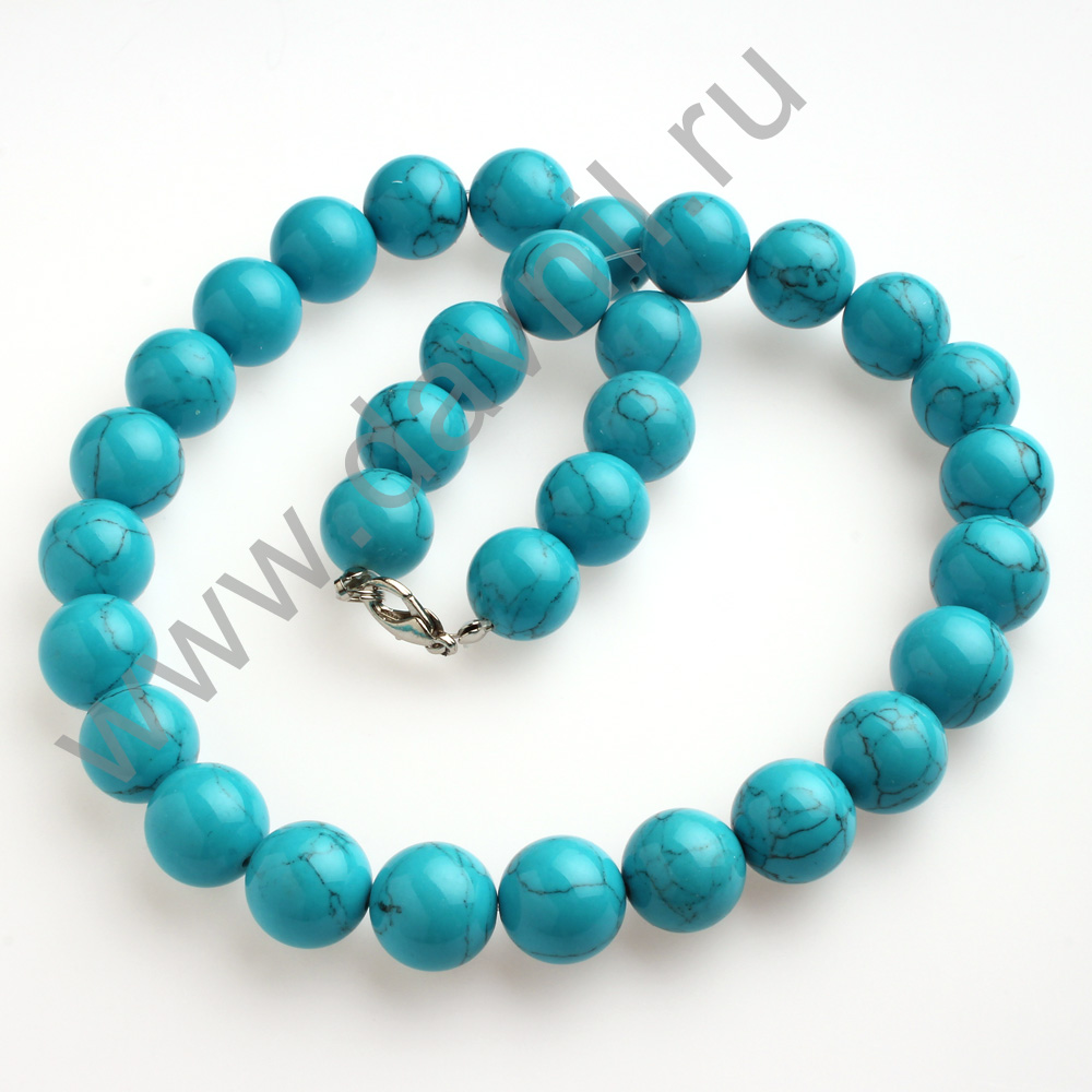 Бусы имитация камня бирюза 14 мм 45 см голубые