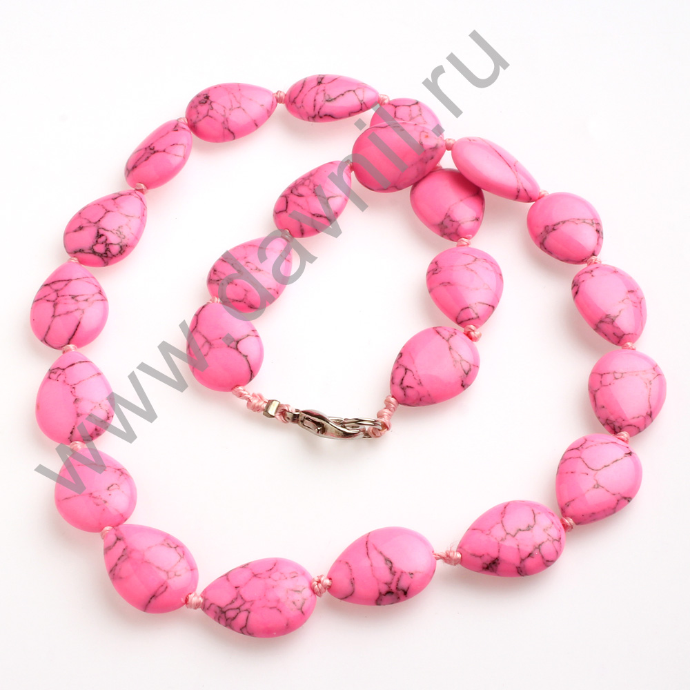 Бусы 16*13 мм капля плоская имитация камня коралл розовые