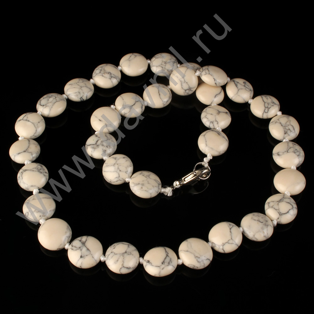 Бусы 18 мм круг плоский имитация камня кахолонг 45 см бежевые