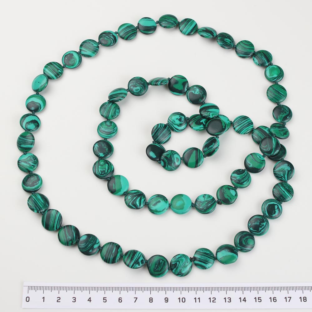 Бусы круг плоский имитация камня малахит 1,2 м